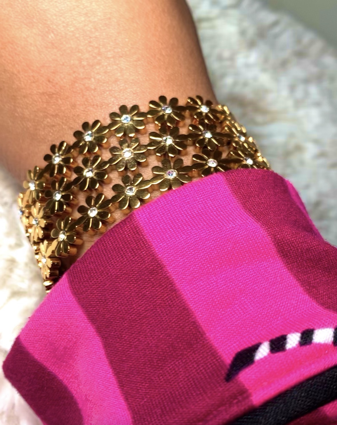 Add a touch of sunshine to your stack with our Daisy Dreams Bangle. This delicate yet eye-catching piece features charming daisy details that bloom with every flick of the wrist. Whether you’re dressing up or keeping it casual, this gold-plated bangle is perfect.